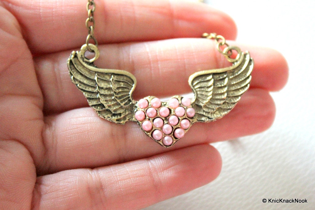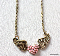 1 x Heart Shape With Angel Wings Pink and Bronze Pendant
