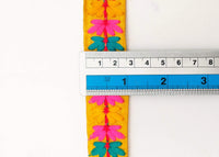 Yellow Cotton Fabric Trim with Floral Embroidery in Blue, Pink, Yellow and Red