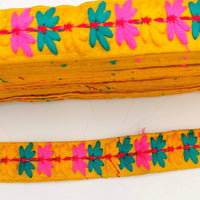 This listing is for a lovely Yellow Cotton Fabric Trim with Floral Embroidery in Blue, Pink, Yellow and Red, Parsi Embroidery, Approx. 27mm Wide, Trim By 2 Yards.