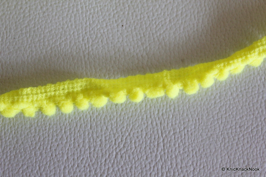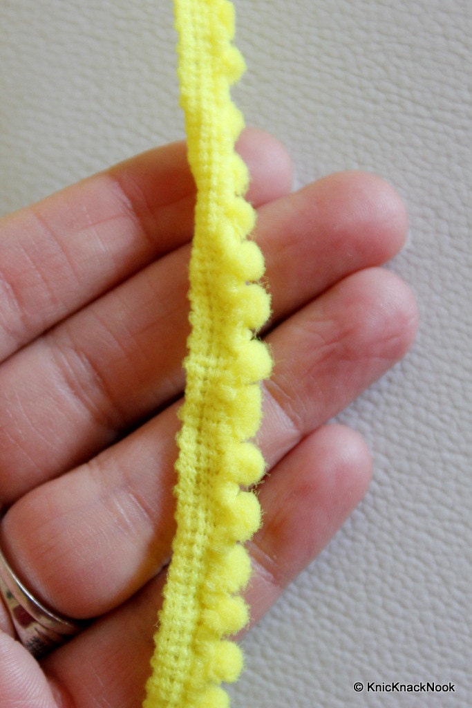 Yellow Embroidery Wool One Yard Lace Trims 10mm Wide, Pom Pom Trim, Fringe Trimming