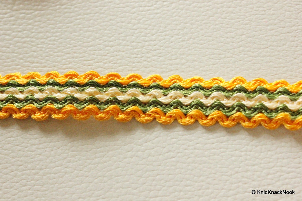 This listing is for a lovely Yellow, Green And Beige Thread Lace Trim. This is a very unique fabric trim and a special KnicKnackNook find which you will not find anywhere else.