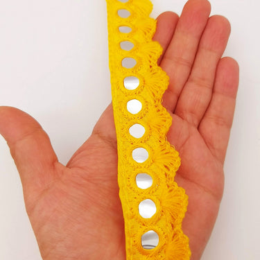 This listing is for a lovely Yellow Fringe Trim With Mirrors.