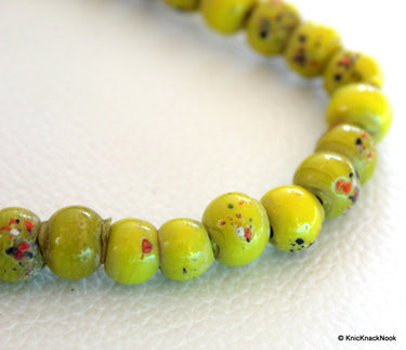 With this order you will receive these Stunning Yellow Green Glass beads with random multicolored dots.Each order will include 20 beads.