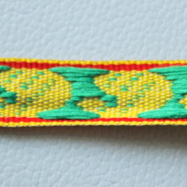 This listing is for a lovely Yellow Fabric Trim With Green And Red Embroidery Thread Lace Trim. This is a very unique fabric trim and a special KnicKnackNook find which you will not find anywhere else.