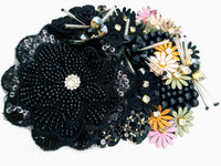 Black Hand Embroidered Floral Applique With Beads, Rhinestones,Bugle Beads