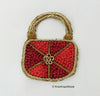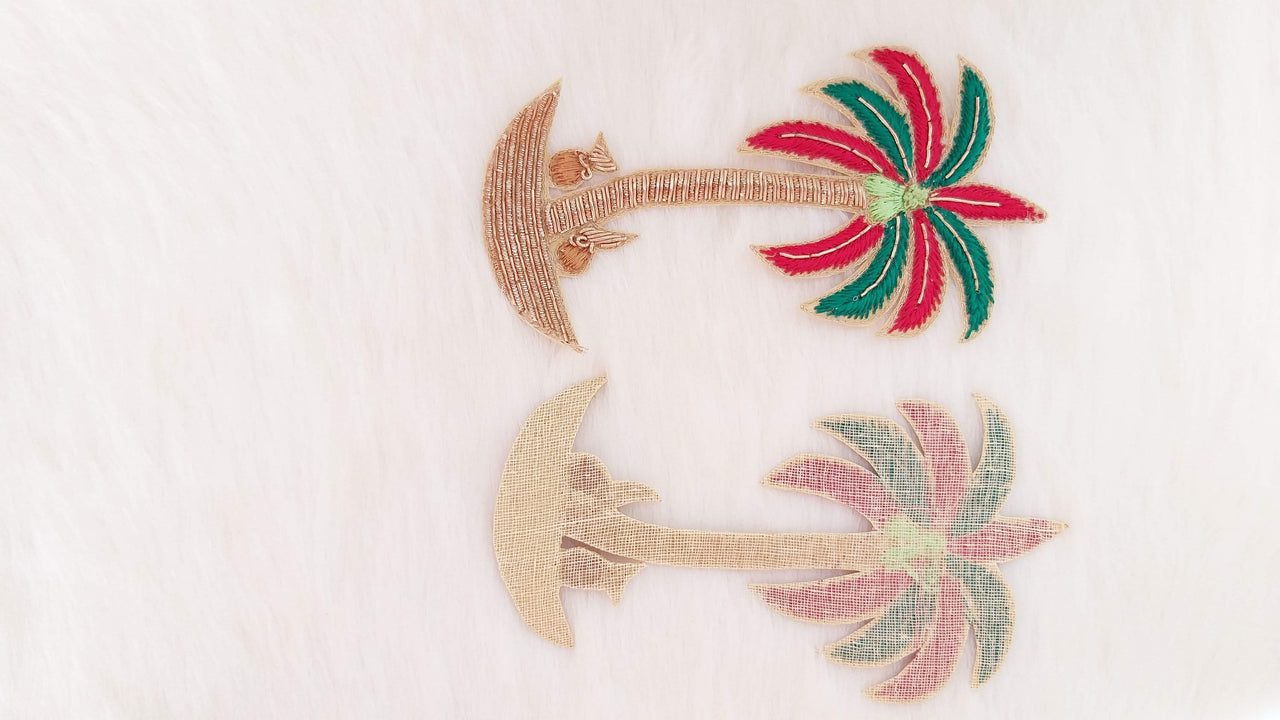 Coconut Tree Applique Hand Embroidered In Bullion Wire (Zardozi), Red, Green and Gold Motif