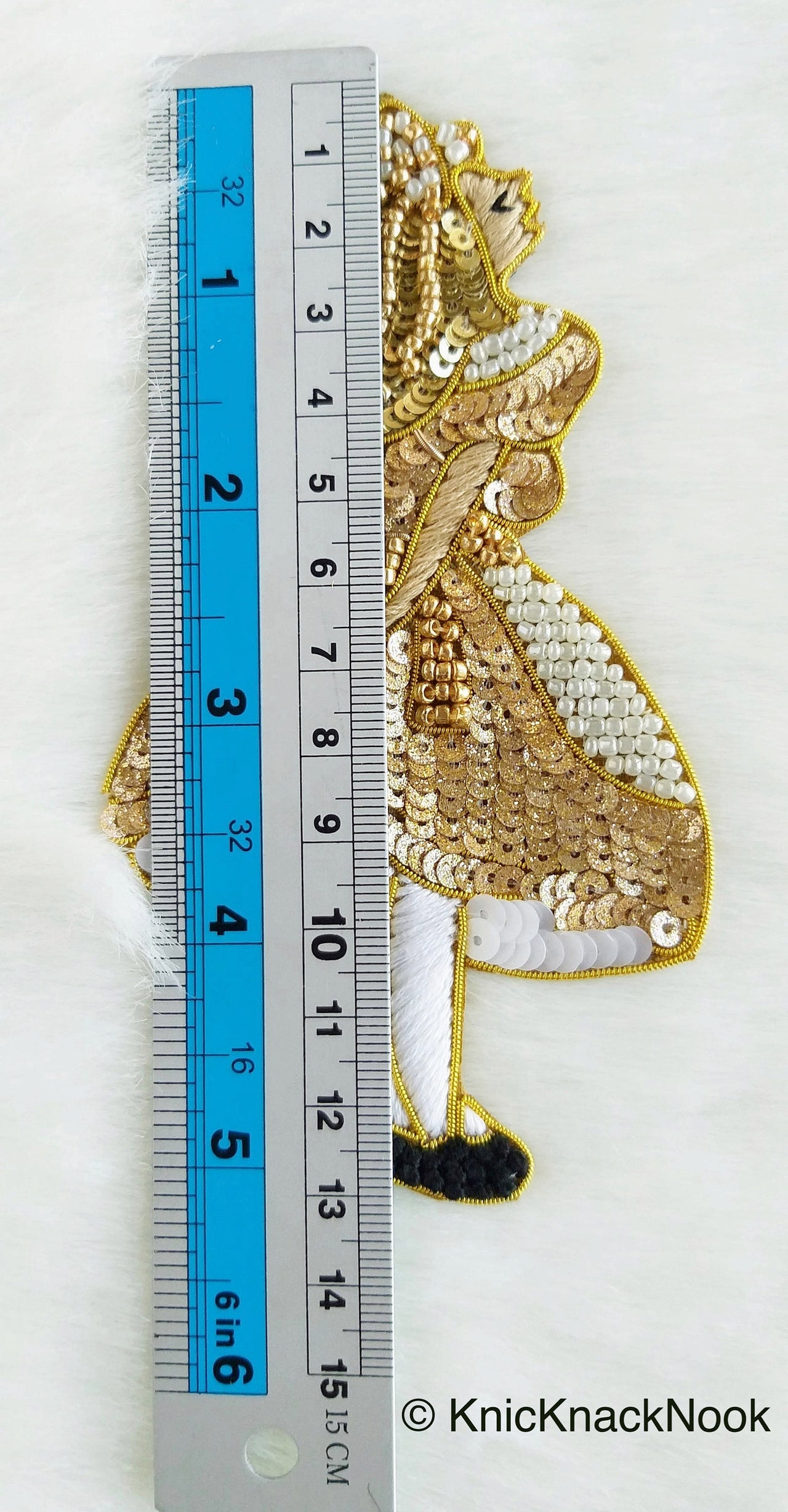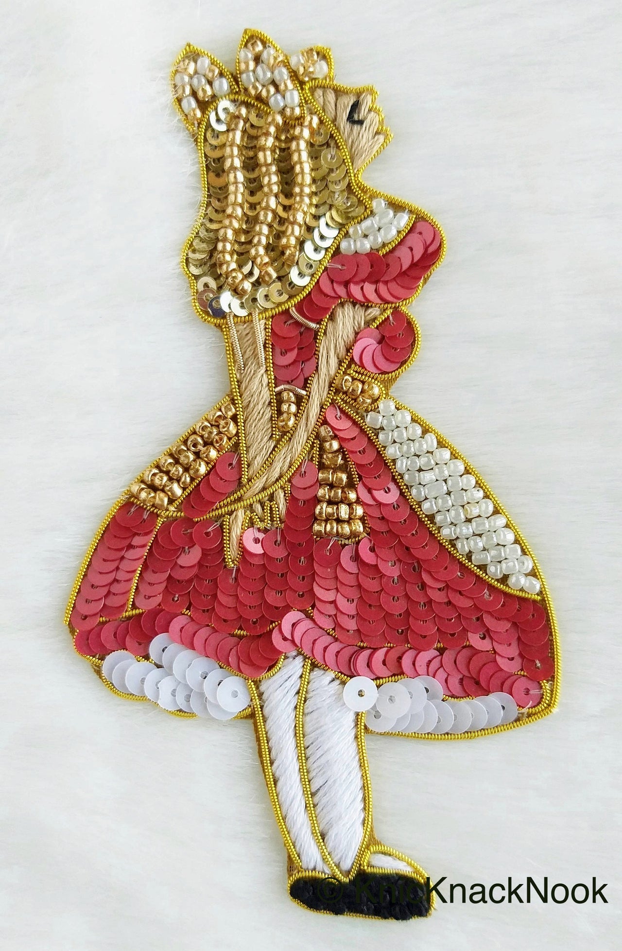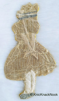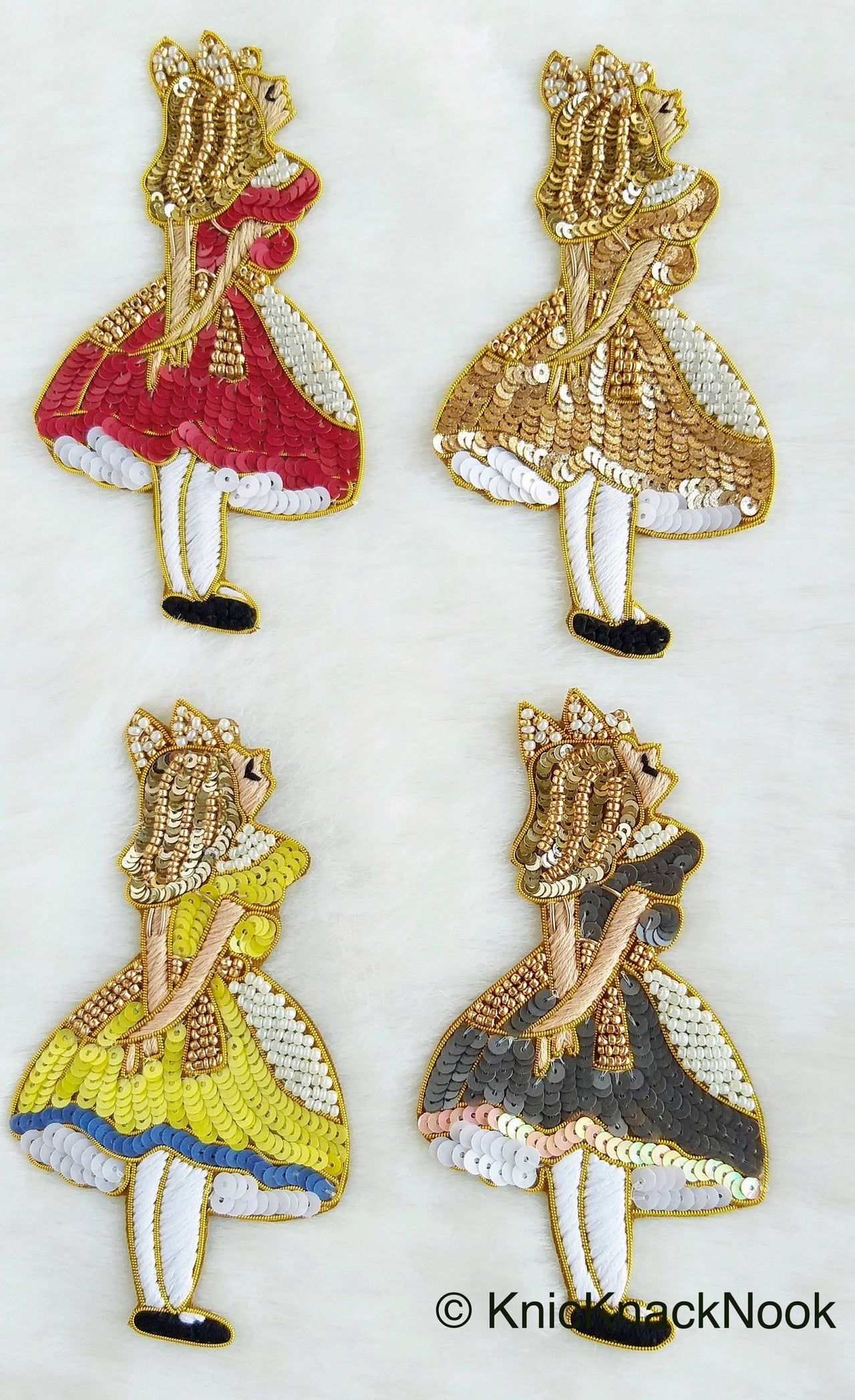 Embroidered Alice In Wonderland Applique With Gold And White Beads, Sequins In Gold, White & Grey / Red / Glitter Gold / Yellow - 210119L243