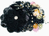 Hand Embroidered Blue Floral Applique With Feather Pom Poms and Stones, 2 Pcs