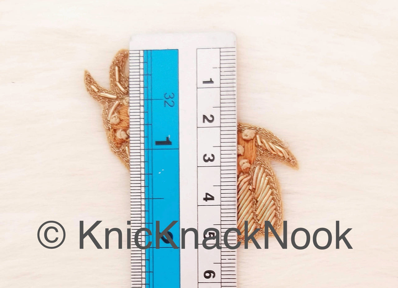 Hand Embroidered Deer Applique In Gold, Beige And Red Zardozi Threadwork, Animal Motif