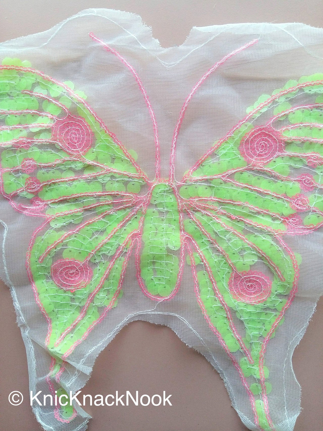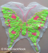 Neon Pink And Neon Yellow Sequins Butterfly On Net, Appliqué Patches x 1 - 200317A118B