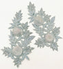 The embroidery on this trim is called Zardozi, an exclusive type of embroidery that is done by hand. Zardozi comes from two Persian words: zar or zarin meaning 'gold', and dozi meaning 'sewing'. Zardozi is a type of heavy and elaborate metal embroidery on a silk, satin, or velvet fabric base.