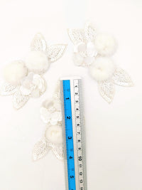 White Hand Embroidered Floral Applique, Beaded and Sequins Applique Wedding Bridal Accessories