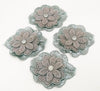 KnicKnackNook proudly presents a lovely White Hand Embroidered Floral Applique, Beaded Floral Motif With Feather Pom Pom, 1 Pc.