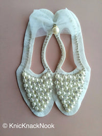 White Shoe Applique With Pearls, Rhinestones, Diamante Faux Swarovski Crystals