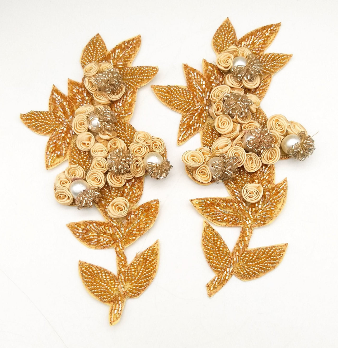Yellow Hand Embroidered Floral Applique, Beaded Floral Motif