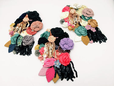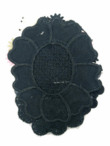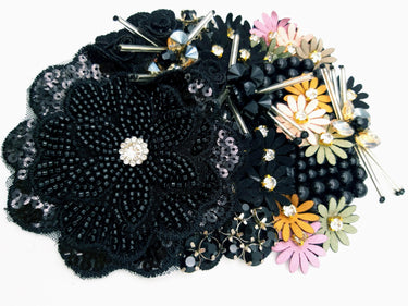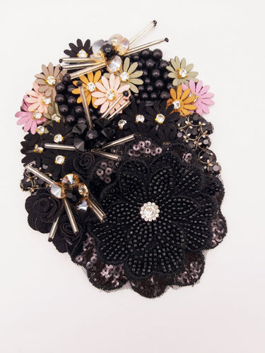 KnicKnackNook proudly presents a lovely Black Hand Embroidered Floral Applique With Beads, Rhinestones,Bugle Beads, Pearls and Sequins.