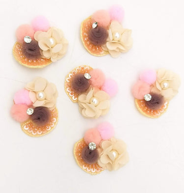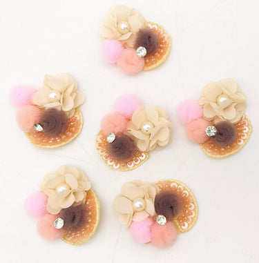 Hand Embroidered Beige and Pink Floral Applique, 2 Pcs.
