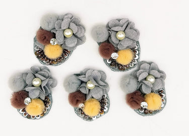 Handmade Grey Floral Applique with...