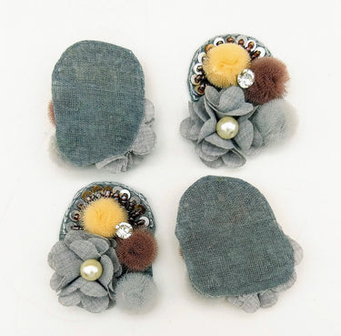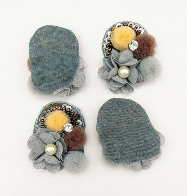 This listing is for Handmade Grey Floral Applique with Beads, Flower Motifs x 3.