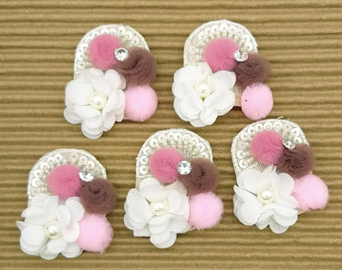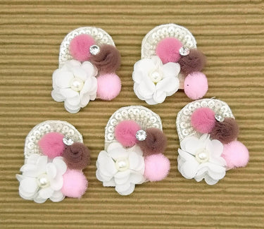Hand Embroidered White, Pink And Brown Floral Applique, 2 Pcs.