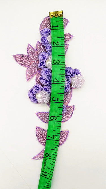 KnicKnackNook proudly presents a lovely Lilac Purple Hand Embroidered Floral Applique, Beaded Floral Motif.