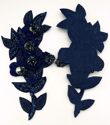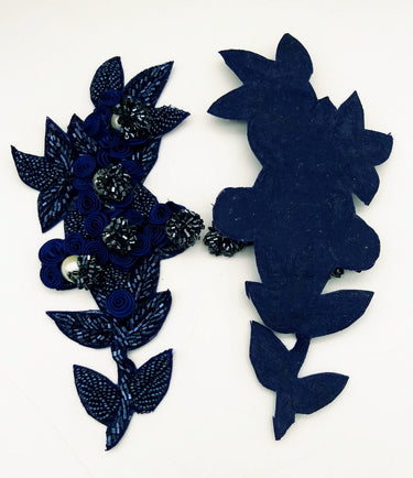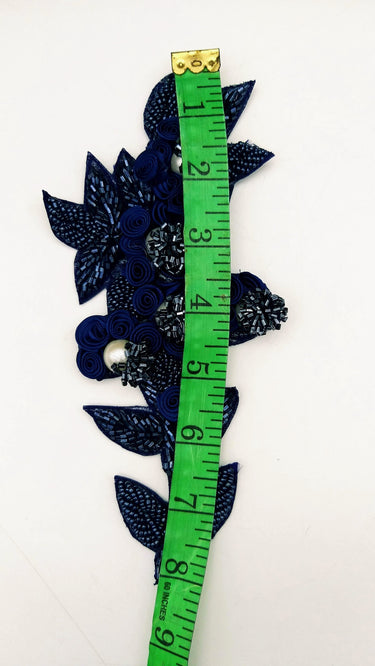 KnicKnackNook proudly presents a lovely Navy Blue Hand Embroidered Floral Applique, Beaded Floral Motif.