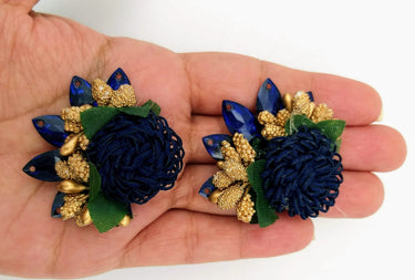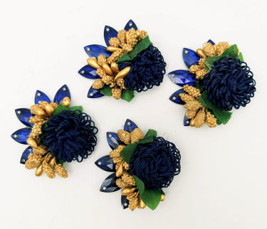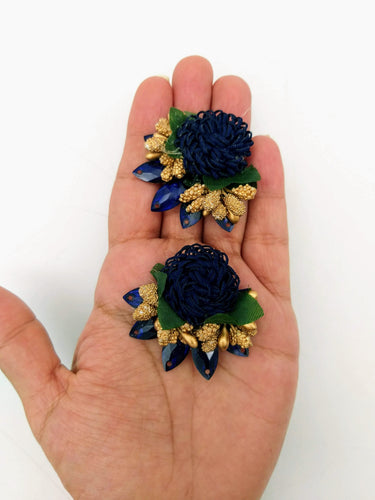 This listing is for Handmade Navy Blue Floral Applique with Beads, Flower Motifs x 3.