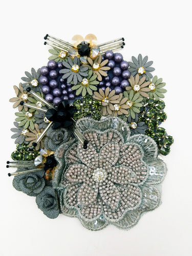 KnicKnackNook proudly presents a lovely Grey Hand Embroidered Floral Applique With Beads, Rhinestones,Bugle Beads, Pearls and Sequins.