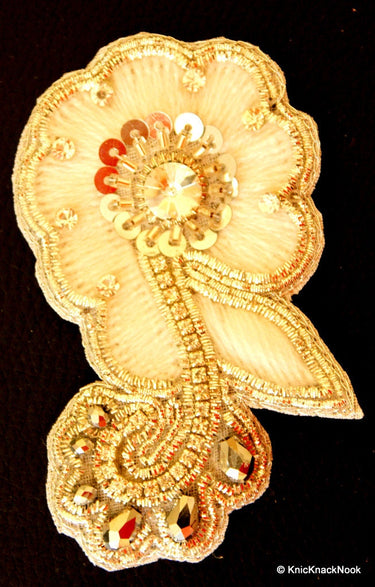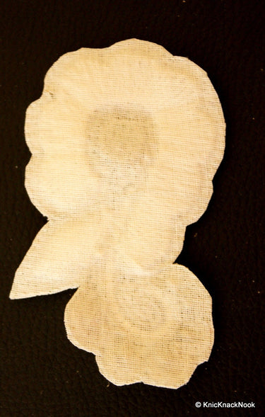 Beige Hand Embroidered Floral Applique, Beaded and Sequins Applique.
