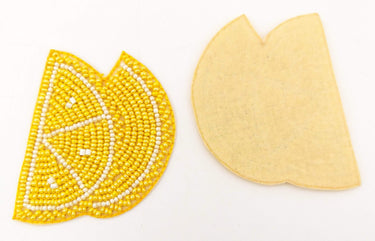 KnicKnackNook proudly presents a lovely Sliced Lemon Beaded Applique, Hand Embroidered In Yellow Beads, Beaded Motif.