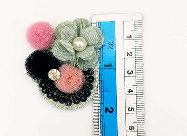 Hand Embroidered Grey, Pink And Black Floral Applique, 2 Pcs.