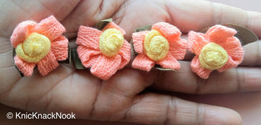 This listing is for Beautiful and very well made Orange, Yellow And Green Crochet Flower And Leaves Appliqué. This can be used for Quilting, Dress Design, Pillow Covers, Bag, Headband, Jewellery making etc. the potential is just endless. You will receive 4 flowers with this order