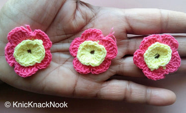 This listing is for Beautiful and very well made Fuchsia Pink, White And Yellow Crochet Flower Appliqué. This can be used for Quilting, Dress Design, Pillow Covers, Bag, Headband, Jewellery making etc. the potential is just endless. You will receive 4 flowers with this order