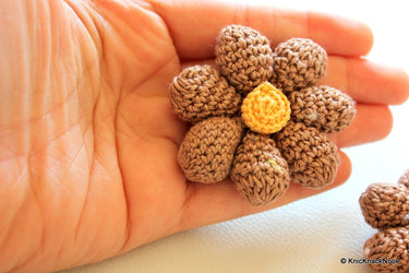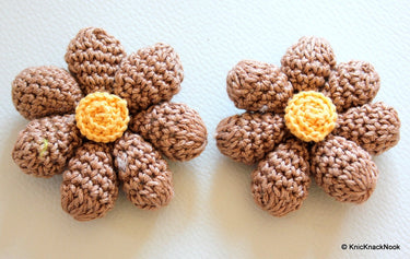 This listing is for Beautiful and very well made Brown and Yellow Crochet Flower Appliqué. This can be used for quilting, dress design, pillow covers, bag, Headband, Jewellery making, the potential is just endless. You will receive 2 flowers with this order