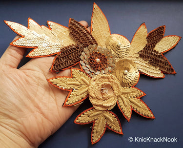 KnicKnackNook proudly presents a lovely Embroidered Floral Applique With Gold Sequins, Appliqué Patch, Wedding Dress Applique, Floral Appliques. This can be used for quilting, dress design, pillow covers, bag, Headband, Jewellery, the potential is just endless.