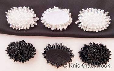 KnicKnackNook proudly presents a Handmade White Beaded Oblong Applique, Sequinned Beads Applique Motif .
