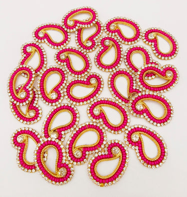 KnicKnackNook proudly presents a lovely 5 Paisley Appliques In Magenta Pink Seed Beads and Rhinestones, Gold Tiny Paisley Appliques, Beaded Applique, Headband Applique Rhinestone Applique. This can be used for quilting, dress design, pillow covers, bag, Headband, Jewellery, the potential is just endless.