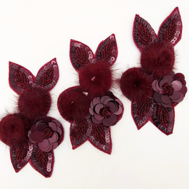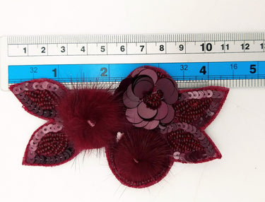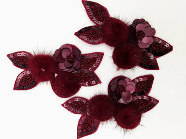 Wine Red Hand Embroidered Floral Applique, Beaded and Sequins Applique.