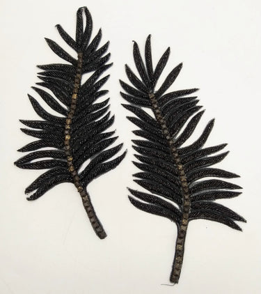 KnicKnackNook proudly presents a lovely Black Hand Embroidered Leaf Applique, Beaded Leaf Motif, Cutwork Applique, 1 Pc.