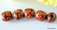 10 x Wood Drum Beads/ Spacers Painted Brown Flower Design 17mm x 16mm