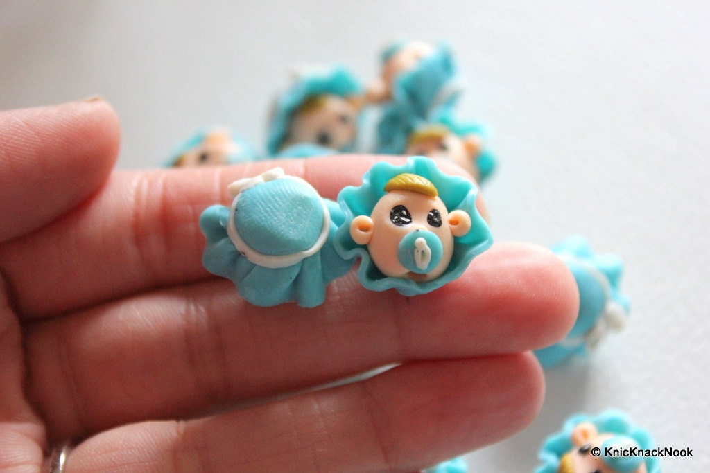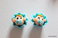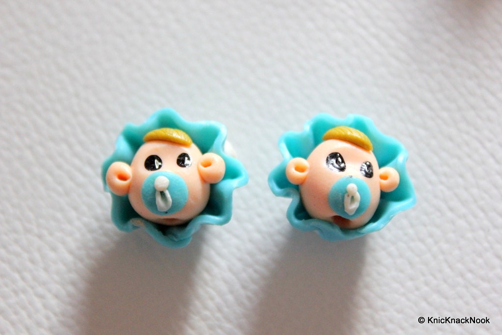 2 x Polymer Fimo Clay Baby Boy Dolls Head Beads, Crafting Beads, Baby Shower Beads