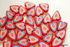 Blue, Yellow And Fuchsia Heart Wood Beads x 5