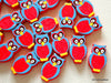 Orange And Green Owl Wood Beads x 10