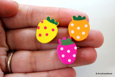 This listing is for 10 x Multicoloured Strawberry Shaped Wood Beads. These are lovely and fun beads and will make for a unique jewellery or craft creations.