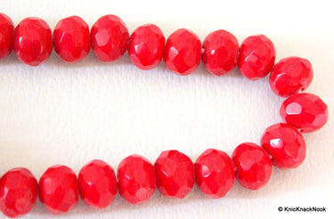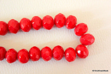 15 x Red Faceted Opaque Glass Ron...