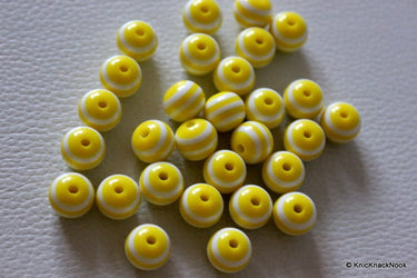 This listing is for 10 Yellow Striped Round Resin Spacer Beads. Beautiful color & striped pattern makes it a great buy for jewelry makers, scrapbooking, crafts etc