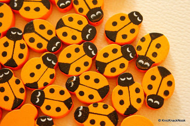 Welcome to our Bead Listing. This listing is for Orange Ladybug Wood Beads x 10. These are lovely beads and will brighten up any jewellery or craft creations.