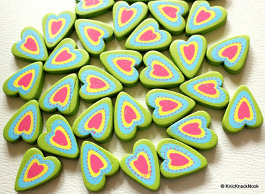 Green, Blue, Yellow And Pink Heart...