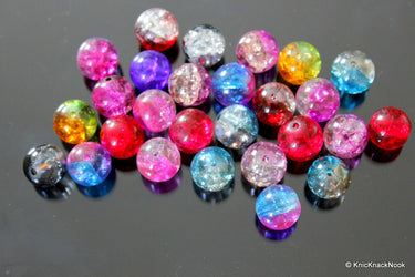 12mm Mix Crackle Glass Beads x 10