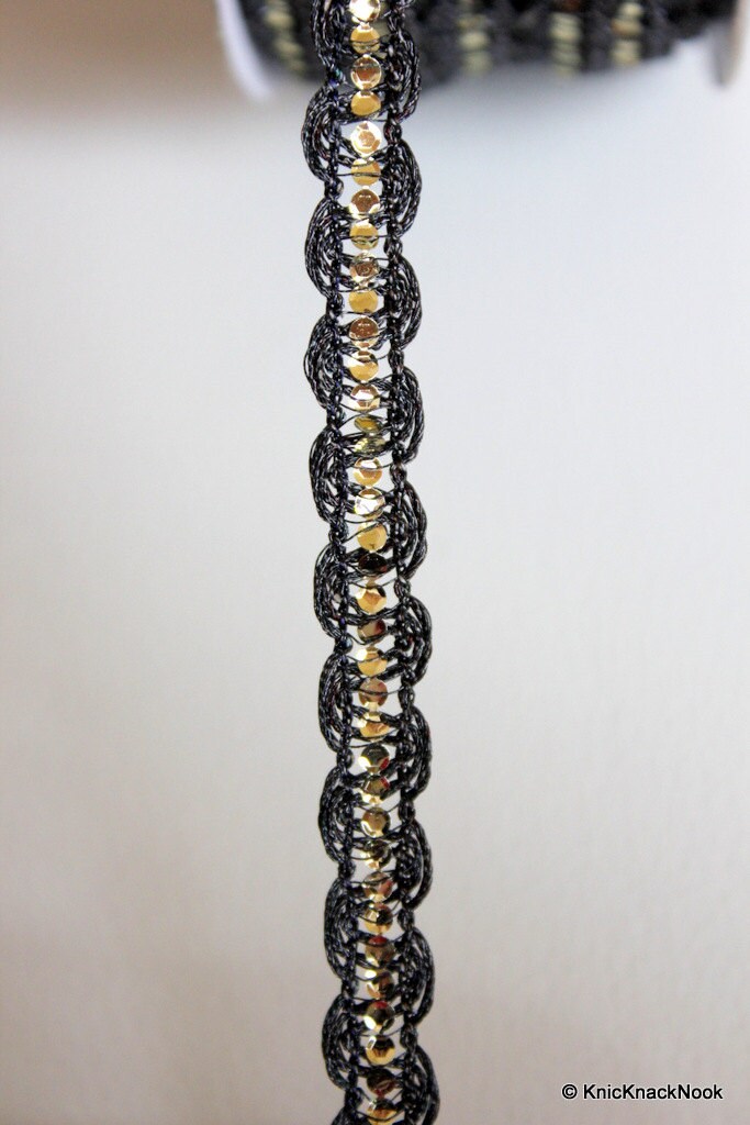 Black Lace Trim With Silver Sequins, Approx. 10 mm wide